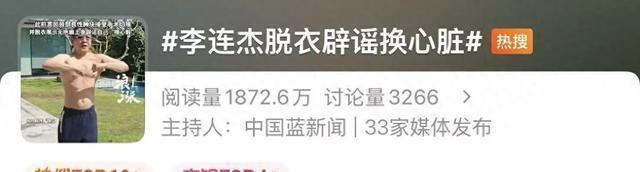 11月9日,“李连杰脱衣辟谣换心脏”登上微博热搜。